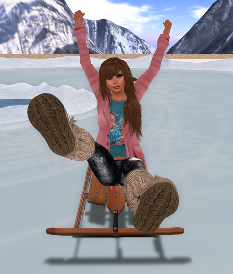 Ohhh yea.. lets not forget the cabin.. my frozen pond annnd this amzingling awesome sled in both pics are from {Whats Next}.. They have some cute cute CUTE winter decorations up and their sim is like a little winter wonderland!! weeeeeeeeeeeeeeee!!