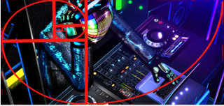 I like Turn Up the Volume by Cypriss Hill. First, I love the bold, saturated colors, the bright yellows, the vibrant cyans, bold red, and gorgeous purples. I like that it is framed on the diagonal, making it more interesting and because the lines go from upwards from left to right, projecting an optimistic, happy feeling. It is also, as you can see, a great example of the Golden Ration as well as being rich in the geometry our pattern-seeking eyes look for.
