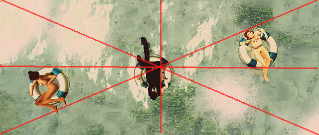 I like Suit up by Myf McMahon. I think this might be one of the happiest pictures I have ever seen. Of course, that might be because I love the water in first and Second Life. The sun on the water is so inviting and it forms a diagonal line that runs counter tot he slightly upward line of the floats. But look how the top of the one on the left kisses the horizontal center line while the float on the right touches it at the bottom. Corner to corner diagonal lines show they are placed in exact counterbalance. The center float is not right square on the exact center which is a good thing. That keeps it more dynamic, retaining the feel ing of movement. Dead center would be, well…dead.I also love the social commentary, the women are nude, the man fully clothes in a formal suit. It looks just like an ad for alcohol or a Bond film.