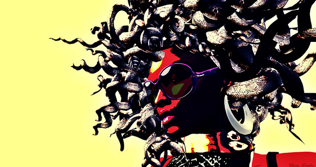 I like Modern Medusa by Chioma. This posterized photo is bold, graphic and has tremendous visual punch. Limiting the colors to yellow and red, two of the three primary colors adds to its simple power.