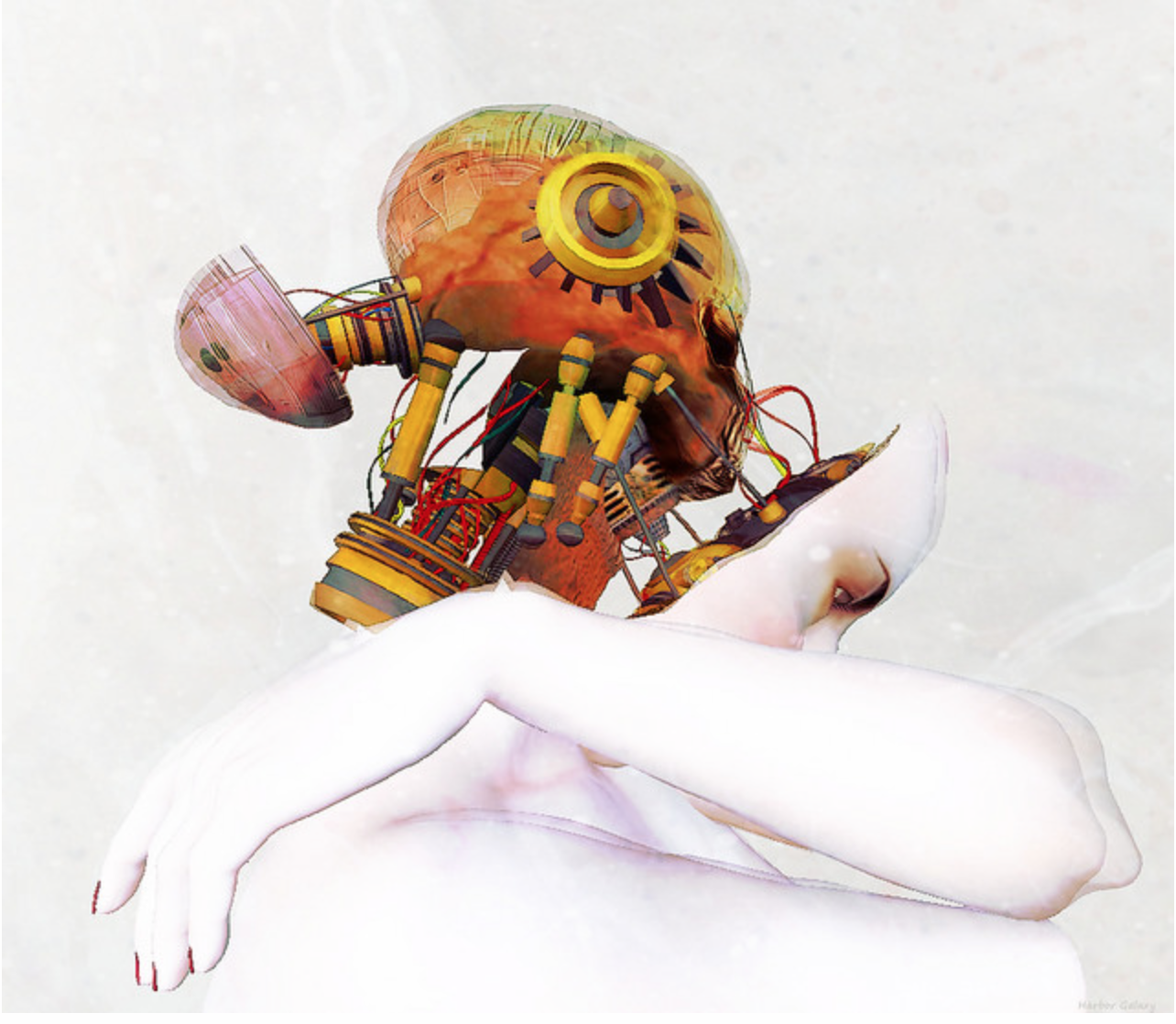 I like Interior by Deborah Lombardo. I just love this. I love the boldly colored brain and have no idea how it fit in the space provided. I love the contrast of color with all the white. It gives new meaning to the word head shot.