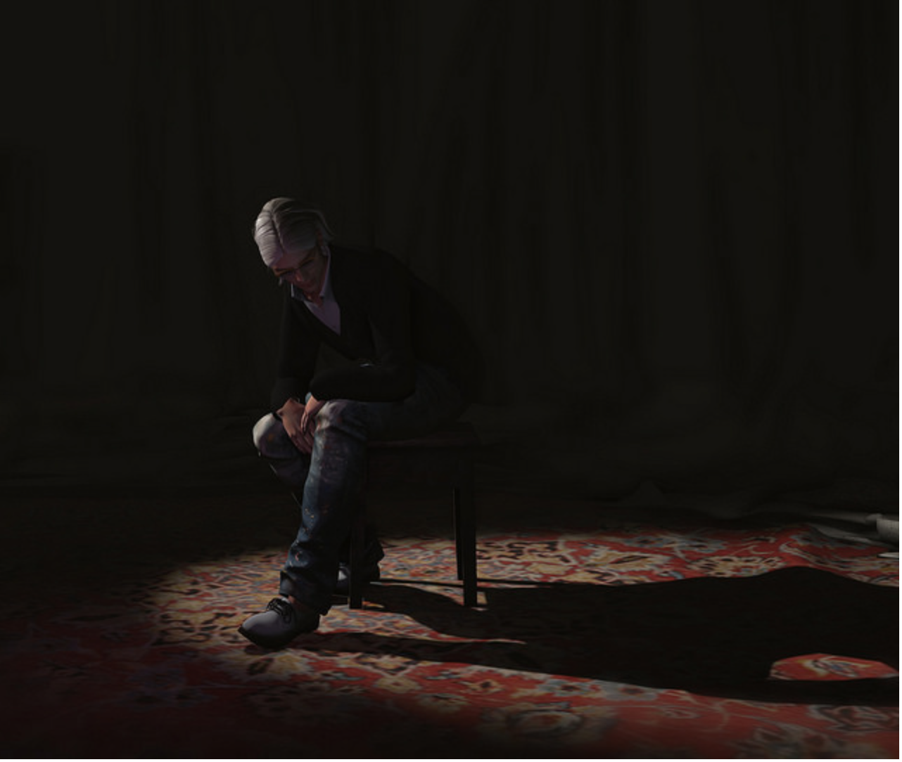 I like Q/Quincy/Client Commission by Lalamoon. I just love this picture. It seems like something out of a celebrity gossip magazine with the bold colors, the high contrast. It’s just so fresh and original for Second Life photos and some of that comes from her process which begins with an SL screenshot but is also rendered in Brush. The subject of this photo blogged about the process.