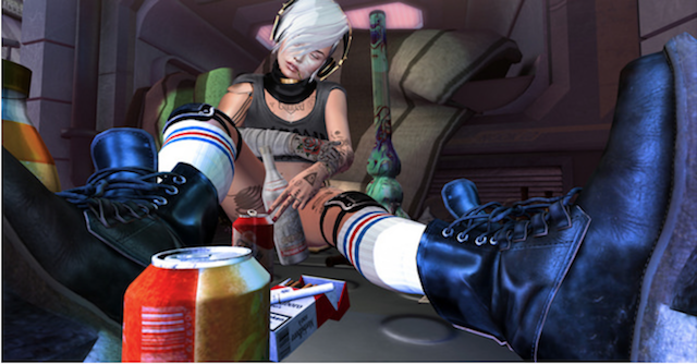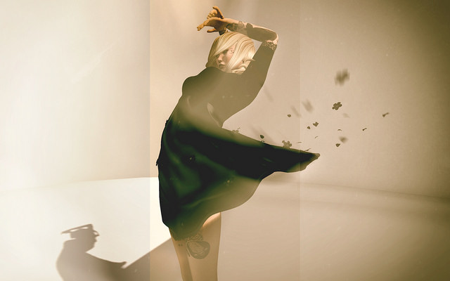 I like Q/Quincy/Client Commission by Lalamoon. I just love this picture. It seems like something out of a celebrity gossip magazine with the bold colors, the high contrast. It’s just so fresh and original for Second Life photos and some of that comes from her process which begins with an SL screenshot but is also rendered in Brush. The subject of this photo blogged about the process.