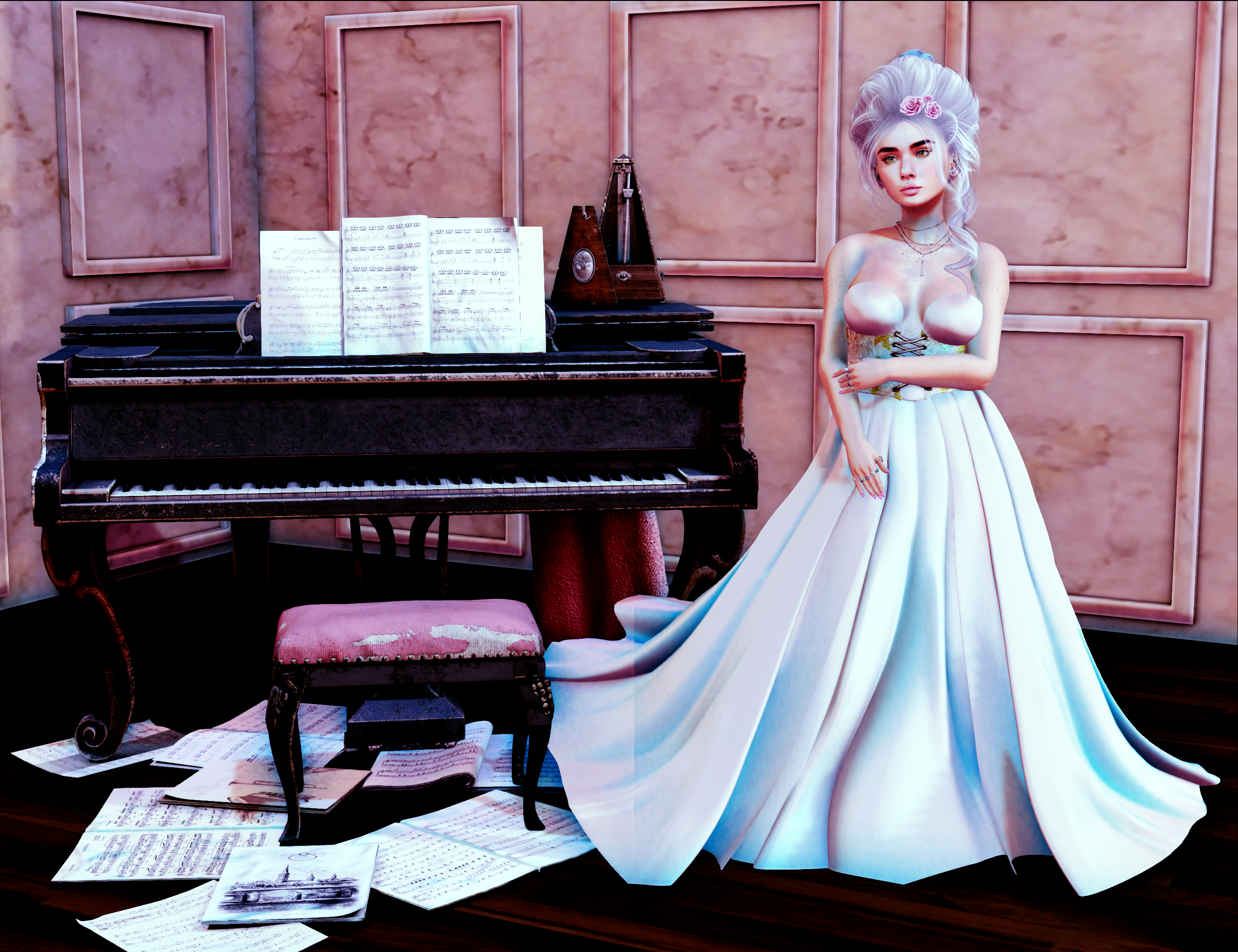 – Nutmeg – Distressed Grand Piano dark with pink drape