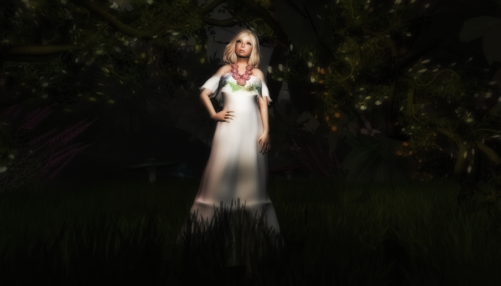 I wanted an excuse to put on something fancy but I didn’t actually have anywhere to go so I decided to take fancy pictures instead. I’ve had this mesh beauty from Mohna Lisa Couture for a long time and I’ve worn it maybe once, I think to a party, and I just think it’s stunning. My favorite part is how it looks like it really shimmers. It must be something in the way it’s textured cause it seriously looks like it moves and shimmers in the light. It’s very cool.