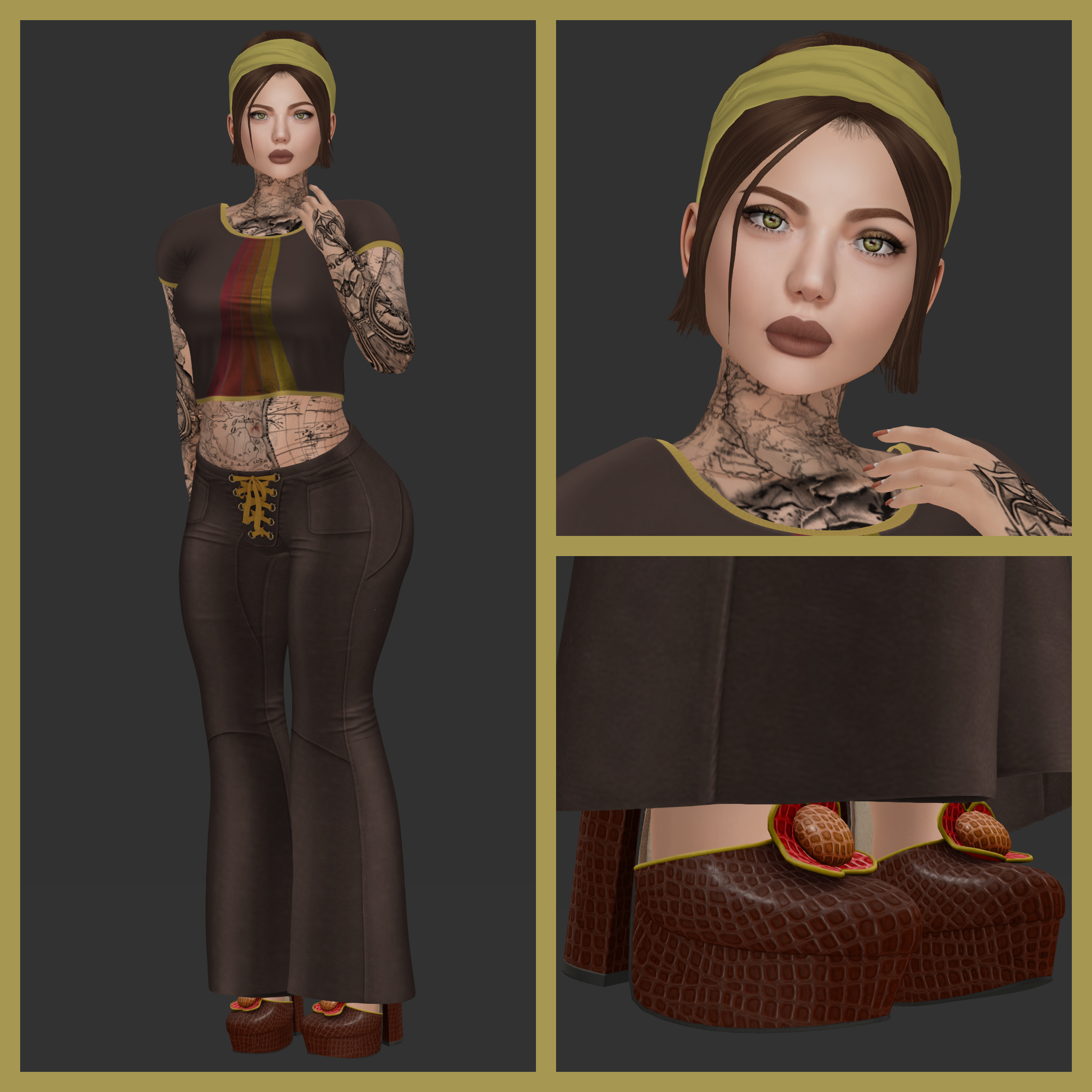 • Outfit : Justice – Brenda Pants & Tee (come in lots of textures and colour options)